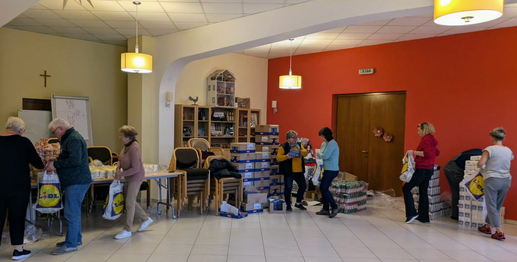Auch in diesem Jahr haben wir – Irmgard Conrad und 4 weitere Mitarbeiter der Rumänienhilfe – die Freunde in Mediasch zum Erntedankfest besucht. Die Kirchengemeinden im Bezirk Mediasch und der Diakonieverein nahmen uns sehr herzlich auf, und wir konnten unsere Freundschaft mit der bekannten Hilfsaktion unterstreichen. Dabei wurden dieses Mal 230 Lebensmittelpackungen zusammengestellt und an Bedürftige in der Gemeinde verteilt.